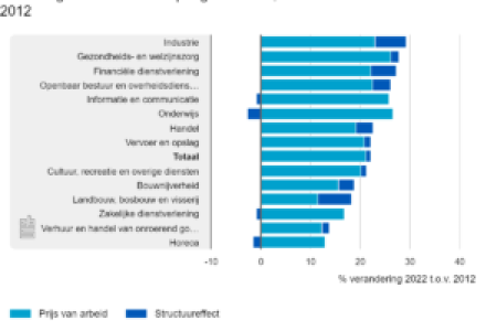 Loonkosten meest gestegen in onderwijs tussen 2012 en 2022 (na correcties)