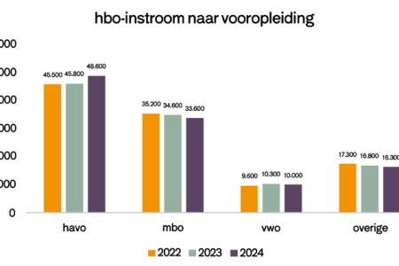 Aantal reacties: 0De instroom van nieuwe studenten in het hoger beroepsonderwijs is dit studiejaar 2024-2025 met een verschil van 0,9% nagenoeg gelijk aan de instroom vorig studiejaar. De zeer kleine toename komt vooral door meer aanmeldingen voor de Associate degree (3,1%) en de hbo-master (6,2%). Voor de hbo-bacheloropleidingen hebben zich evenveel studenten als vorig jaar ingeschreven. De inschrijvingen voor de bachelors in de sector onderwijs vormen een belangrijke uitzondering, zij laten een stijging zien van 7%. Bij de internationale studenten die zich hebben ingeschreven voor een hbo-bachelor valt op dat er een daling is van -8% van studenten afkomstig binnen de Europese Economische Ruimte (EER). De daling van studenten afkomstig uit niet-EER landen bedraagt -7%.Lees meer over "Instroom nieuwe hbo-studenten blijft vrijwel gelijk in studiejaar 2024-2025"