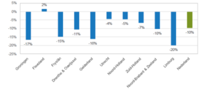 Figuur 2: Ontwikkeling van het aantal hbo-studenten per provincie in collegejaar '29-'30 ten opzichte van '21-'22